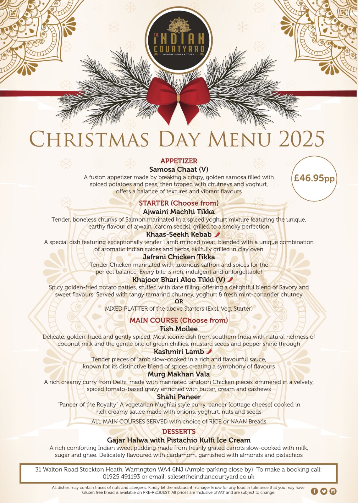 The Indian Courtyard is a fine quality Indian restaurant based in Stockton Heath in the North West of the UK. We pride ourselves on creating the highest quality food made from the freshest and best ingredients and spices. From our excellent starters, through choices of vegetarian and non-vegetarian curries and main courses, to our masterfully created desserts with their delicious sweet flavours, we set the mood right and indulge you with a diversity of wonderful tastes and aromas.